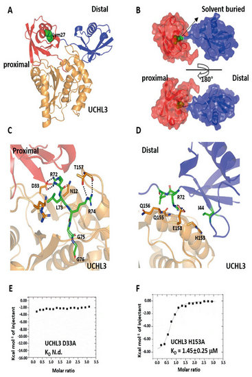 图2. 去泛素化酶UCHL3同K27二泛素复合物的晶体结构