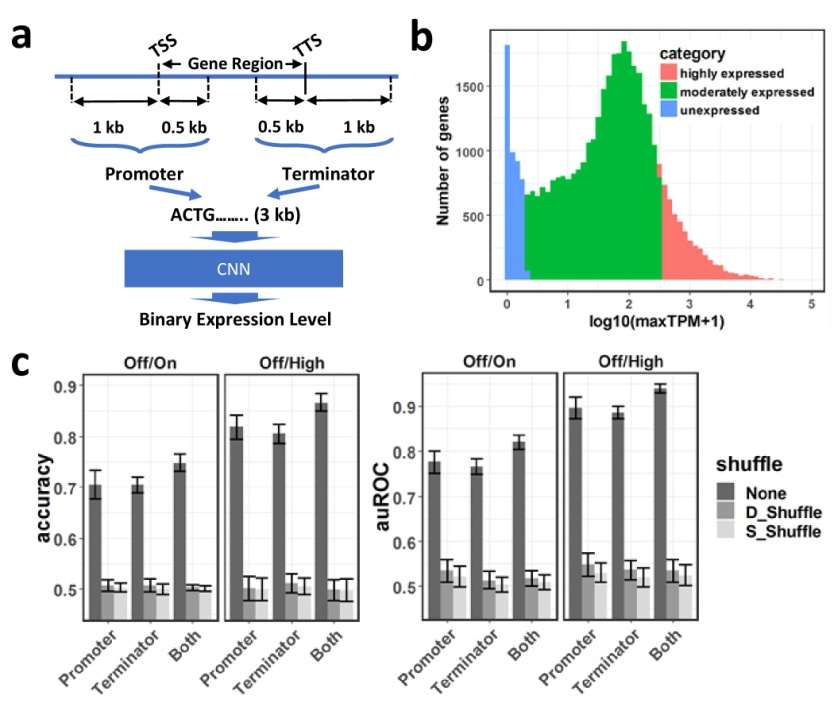本研究中,汪海以基因家族代替单个基因为单位随机分配训练集和测试集数据,成功建立了预测二元化基因表达量(binary gene expression levels)的卷积神经网络模型。此外,进一步利用多种算法进行解析,获得了调控基因表达的关键DNA基序。在此模型的基础上,汪海的合作研究者利用进化上亲缘关系较近的两个物种,成功预测了同源基因的相对表达量,并进一步获得了调控同源基因相对表达量的关键DNA基序。