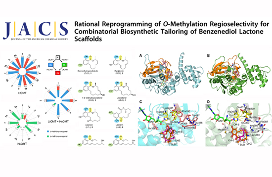 本研究以两种真菌氧甲基转移酶LtOMT和HsOMT为研究对象,利用蛋白质同源建模等技术解析出二者在催化位点上产生差异的分子机制。随后,通过多肽片段交换和氨基酸定点突变等手段理性设计、合理改造LtOMT的结构,重塑其催化位点,成功开发出一种能够定向改造氧甲基化生物催化元件的技术。应用改造后的LtOMT,在多种多酚类药物先导化合物上实现了氧甲基化修饰方式的改变,改善了这些小分子的理化性质。