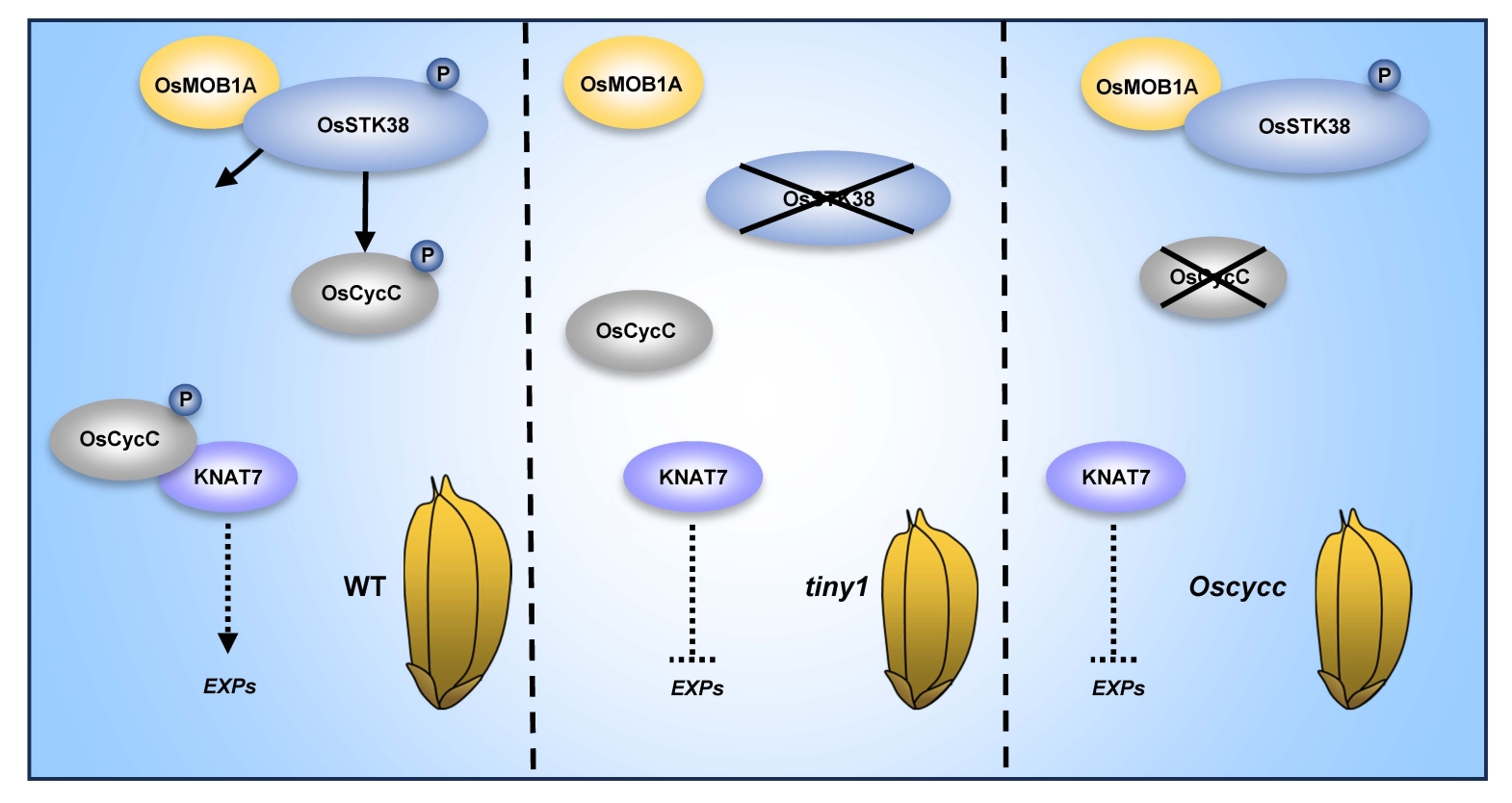 图注:OsMOB1A-OsSTK38-OsCycC通路调控水稻籽粒大小