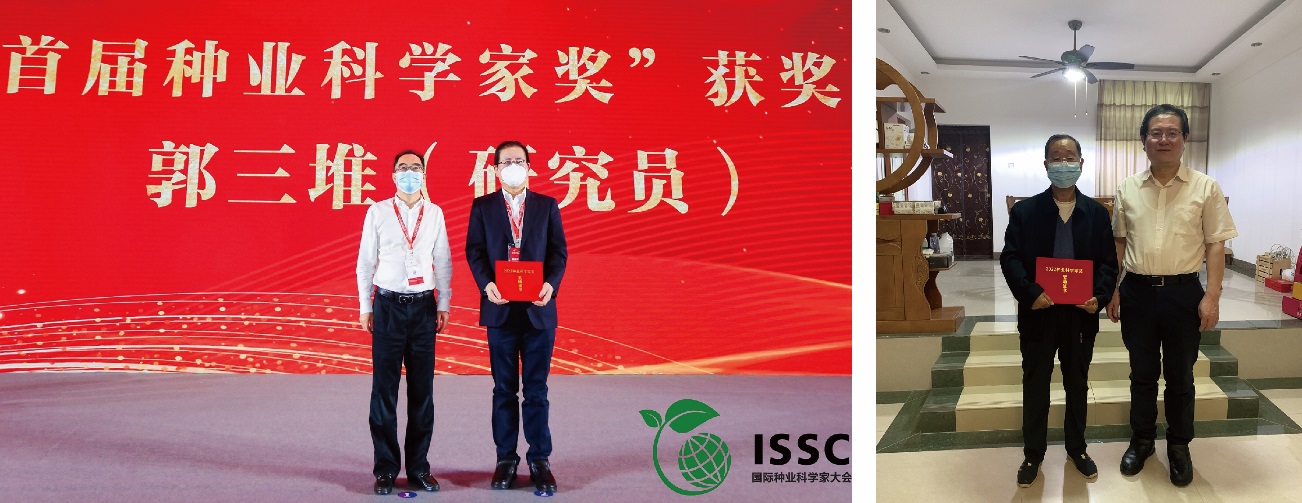 郭三堆研究员从事棉花生物技术育种研究30多年,成功培育自主知识产权国产单价、双价、三系抗虫棉和新型抗除草剂棉花,实现从“0”到“1”的突破,为我国棉花产业做出了巨大的贡献,被誉为中国“转基因抗虫棉之父”。郭三堆研究员获国家发明专利授权24项,其中专利金奖1项、优秀奖2项?;窆铱萍挤⒚鞫冉?项,国家科技进步二等奖4项,何梁何利奖1项、省部级一、二等奖7项,中国农科院特等奖1项。郭三堆研究员被授予国家突出贡献中青年专家、百千万人才工程国家级人选、全国先进工作者、全国优秀科技工作者、全国“五一”劳动奖章、全国科技创新人物、中国十大种业功勋人物、国务院政府特殊津贴等系列荣誉。2022年,郭三堆研究员个人出资200万元设立“优秀学生奖”和“优秀导师奖”奖学金,奖掖后学,是现代科学家精神的楷模。