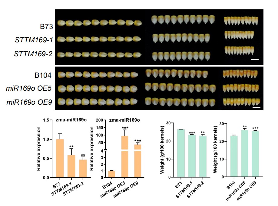 图注:miR169o正调控玉米籽粒大小和粒重