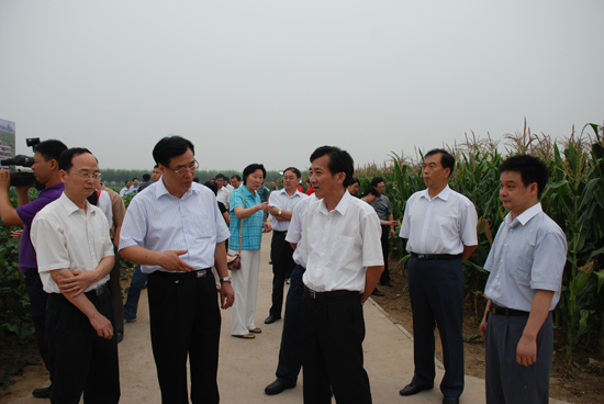 2009年8月25日下午,中国农业科学院(万庄)国际农业高新技术产业园区内彩旗飘扬,气球高悬,一派节日气象,三系抗虫棉成果展示会正在这里隆重召开。农业部陈晓华副部长、科技部郑国安秘书长、廊坊市人民政府王爱民市长、中国农业科学院翟虎渠院长以及科技部条财司领导,农业部办公厅、人事司、科教司、种植业司、计划司、财务司、科技发展中心、农技推广中心的领导,北京市农业局领导,廊坊市人民政府及廊坊市广阳区领导,中国农业科学院科技局和生物技术研究所领导及专家,来自山东、安徽、河南、四川、河北、山西和深圳等省市的18家育种单位和相关企业代表100人多参加了会议。