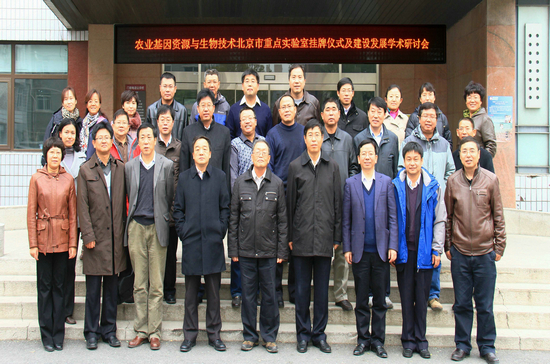 2012年11月22日上午,农业基因资源与生物技术北京重点实验室正式挂牌成立。该实验室由北京市农林科学院北京农业生物技术研究中心和中国农业科学院生物技术研究所联合共建,充分整合了在京国家农业基因资源与生物技术研发机构的先进技术优势和北京市属专业科研部门的技术特色,面向国家和北京市现代农业发展重大战略需求,通过院地共建合作的机制性创新,将推动科研合作、人才培养、学术交流和资源配置,促进北京市及全国农业生物技术研究与产业化发展,努力成为具有国际先进水平的研究创新中心、产业孵化中心和人才培养基地。 实验室重点关注农业基因资源与生物技术前沿性、战略性、基础性研究,将围绕北京市的特色资源优势,主要集中在作物基因组学、农业基因资源挖掘与利用、作物重要农艺性状的遗传控制与代谢途径、作物新种质创制、农业生物安全理论与技术五大研究方向。 北京市农林科学院李云伏院长、北京市农业局马荣才副局长、北京市科委杨仁权处长、中国农科院科技管理局平台处熊明民处长共同为重点实验室揭牌。北京市农业生物技术中心主任魏建华研究员和生物技术研究所所长林敏研究员及来自共建单位双方的研究人员出席了挂牌仪式,并与来自中科院的特邀专家就重点实验室的建设发展、合作运行等方面进行了学术研讨。