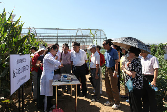 此次展示活动涵盖粮、棉、蔬三大作物,其中抗虫棉和转植酸酶基因玉米均是生物所的标志性成果,现场展示出了转基因三系抗虫棉的抗虫性及三系育种平台的优越性、转植酸酶基因玉米的丰产性及快速检测技术。另外,抗虫玉米及抗虫甘蓝是生物所及合作单位正在研发的转基因新品系,抗虫玉米的田间抗虫效果已达到国际同类产品水平,抗虫甘蓝在自然网室条件下也表现出优异的抗虫性。田间现场观摩后举行了座谈会,会上吴胜军副局长赞扬了生物所在转基因作物研发上的成绩,表示院成果转化局将在成果推广、科技合作及产业化推进等方面做好组织管理和实施工作。范云六院士以转植酸酶基因玉米为例,谈了转基因研发中产学研结合的重要性,从实验室研究到生产应用,转植酸酶基因玉米已经推进到准产业化阶段,同时还特别强调了科研人员参与科普工作的重要性,建议积极采用微信等新兴媒体手段参与科普宣传。戴景瑞院士鼓励科研人员继续努力加强转基因作物研发工作,在科研上做好产业化的技术准备。方智远院士提出做好田间示范的建议,通过田间示范展示转基因作物的优良性状与产业推广潜力。