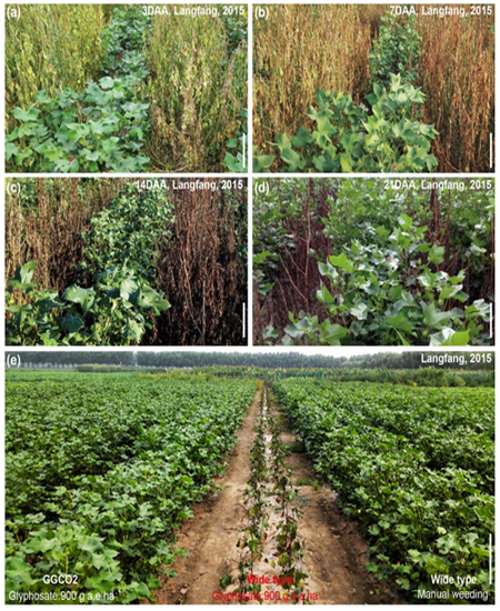 图1. 转基因抗草甘膦除草剂棉花田间效果图