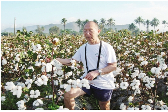 “既然这个双价基因能转入棉株,我们就能育出更优秀的抗虫棉?!闭飧黾柑觳患藁ň拖虢尢铮看纬霾罨乩淳图弊畔率匝榈氐挠旨?,立刻确定了自己新的育种方向。从此,从大陆内地到天涯海岛,郭香墨不停在两地往来穿梭,起点、终点都是棉花育种田?!霸诤D霞哟敝?,能缩短一半的育种时间。”不断寻找、反复筛选,既像大海捞针、又像蜜蜂寻蜜,3年之后,我国第一个双价转基因抗虫棉品种宣告培育成功,2002年通过国家审定。看到品种终于成功的那一刻,郭香墨说他的感受,“就像是喝了一碗冰糖水”。