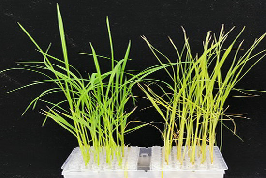 正常生长条件和45度热激处理36小时的水稻苗期表型 中国农科院生物所供图