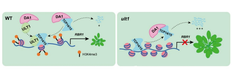 科研团队发现一个表观遗传调控蛋白,可以与转录因子结合,被招募到下游靶基因上改变组蛋白甲基化修饰水平,激活靶基因表达,影响植物细胞大小和细胞数目,进而决定器官大小。该研究揭示了表观遗传复合体调控植物器官大小的新机制,为深入探索作物种子大小的分子调控机理和遗传网络提供了新视角,也为作物的高产育种提供了重要的理论基础和基因资源。