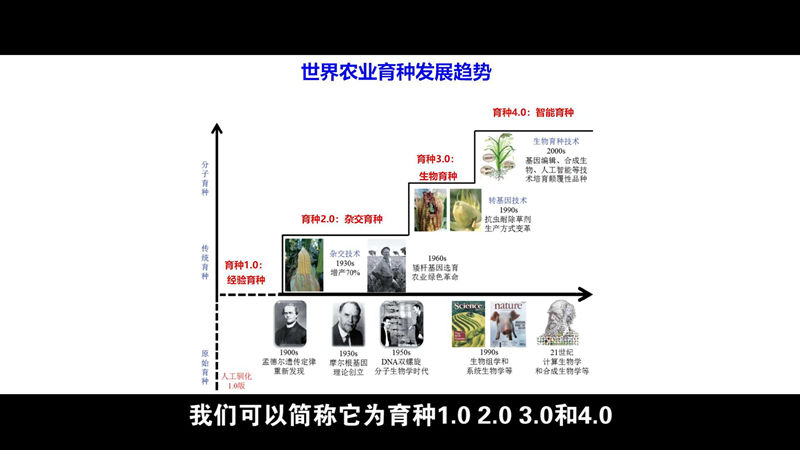 为何要发展生物育种技术?中国农业科学院生物技术研究所研究员梁成真介绍,农业生物技术育种的发展大概经历了4个阶段,简称为育种1.0、2.0、3.0和4.0。