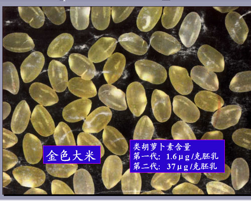 [黄大昉]:维生素A含量比较高。这是一个很好的例子。其中有四个基因,这四个基因有一个是β胡萝卜素等,它们转到水稻里面去以后,稻米的胚果就呈黄色,所以看起来金光闪闪,因此叫“金色稻”,吃了这种稻米以后,人体的维生素A含量就提高。所以这种稻米受到很多发展中国家农民的欢迎。这说明转基因技术将来在提高我们很多食品营养方面能够发挥很大的作用。类似这样的例子还有不少。咱们有时间的话,待会儿还可以再聊。