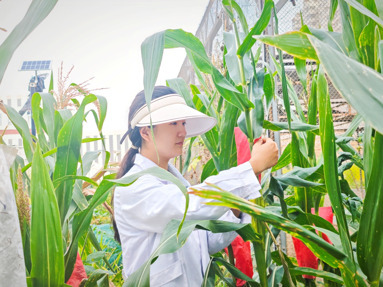 在科研路上,她第一次意识到自身的成长是2020年夏天随团队去廊坊基地。为了保证玉米的授粉进度,每天清晨在露水中套袋,上午在烈日下授粉,傍晚在霞光中剪花丝。那是盛夏,地里热浪滚滚,气温常常接近40℃。刚开始时,由于对田间工作的不熟悉,总是担心因为操作不熟练而影响授粉质量。回到住处时,手臂和脖子晒得通红,身体的疲惫让她萌生过退缩的念头??墒且幌氲阶约菏且幻吃?,想到实验背后承载的不单单是个人的毕业与否,她又咬牙坚持下来。以往的学习生活中,只会面对书本和实验台思考。那年夏天,她才开始接触田间作物,逐渐学会了在地头思考,学会了如何在高温中保持专注,学会了如何用严谨的态度对待每一株材料,学会了如何在诸多相似的植株中发现异同。更重要的是,她切实意识到科研成果必须经过大田的验证。在这段经历中,她努力查找自身不足,理论知识与田间实践结合不够,实验设计缺乏对实际环境的考虑。此后,她更加注重将实验设计与田间需求结合起来。