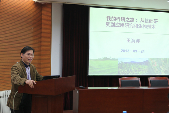为更好地满足和适应现代研究所建设和实施院创新工程的需要,2013年我所加大和加快了高层次人才的引进力度和速度。9月24日,我所引进的海外高层次领军人才王海洋博士与全所职工见面,并以“我的科研之路:从基础研究到应用研究和生物技术”为题做了一场高水平的学术报告。报告会由林敏所长主持。