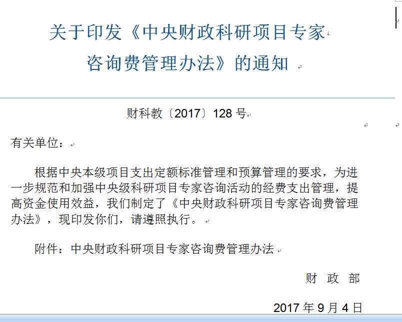 中央财政科研项目专家咨询费管理办法 (财科教...